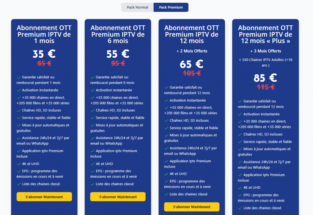 Comparaison des abonnements OTT Premium IPTV – Pack Premium