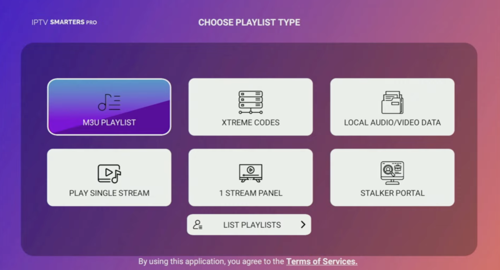 1. Dans IPTV Smarters Player, choisissez Load Your Playlist or File/URL.
